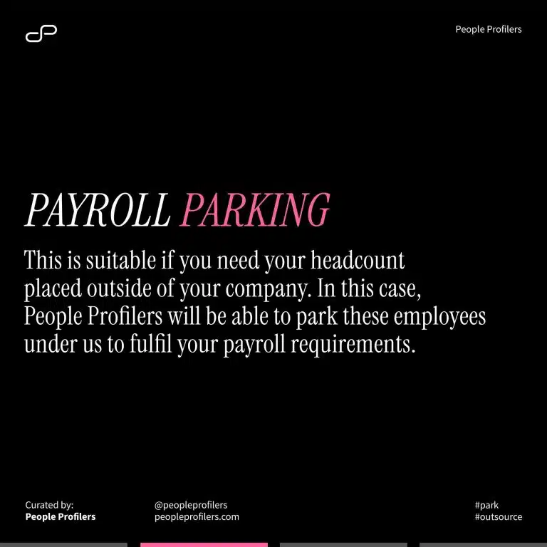 Through Payroll Parking, businesses can utilise the expertise of job recruitment agencies and human resource provides like People Profilers to manage their employees, payroll, CPF contributions, work injury compensation, insurance and benefits administration while also staying up-to-date on the legal and statutory requirements of Singapore’s Employment Act without the need to train and manage their own HR department.